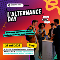 La CCI Hautes-Alpes Formation organise la première édition de l'Alternance Day, un événement dédié à la rencontre entre les entreprises en quête d'alternants et les étudiants motivés à intégrer le monde professionnel. Rendez-vous le 29 avril 2026 dans les locaux de la CCI Hautes-Alpes Formation à Gap pour une journée riche en échanges et en opportunités.